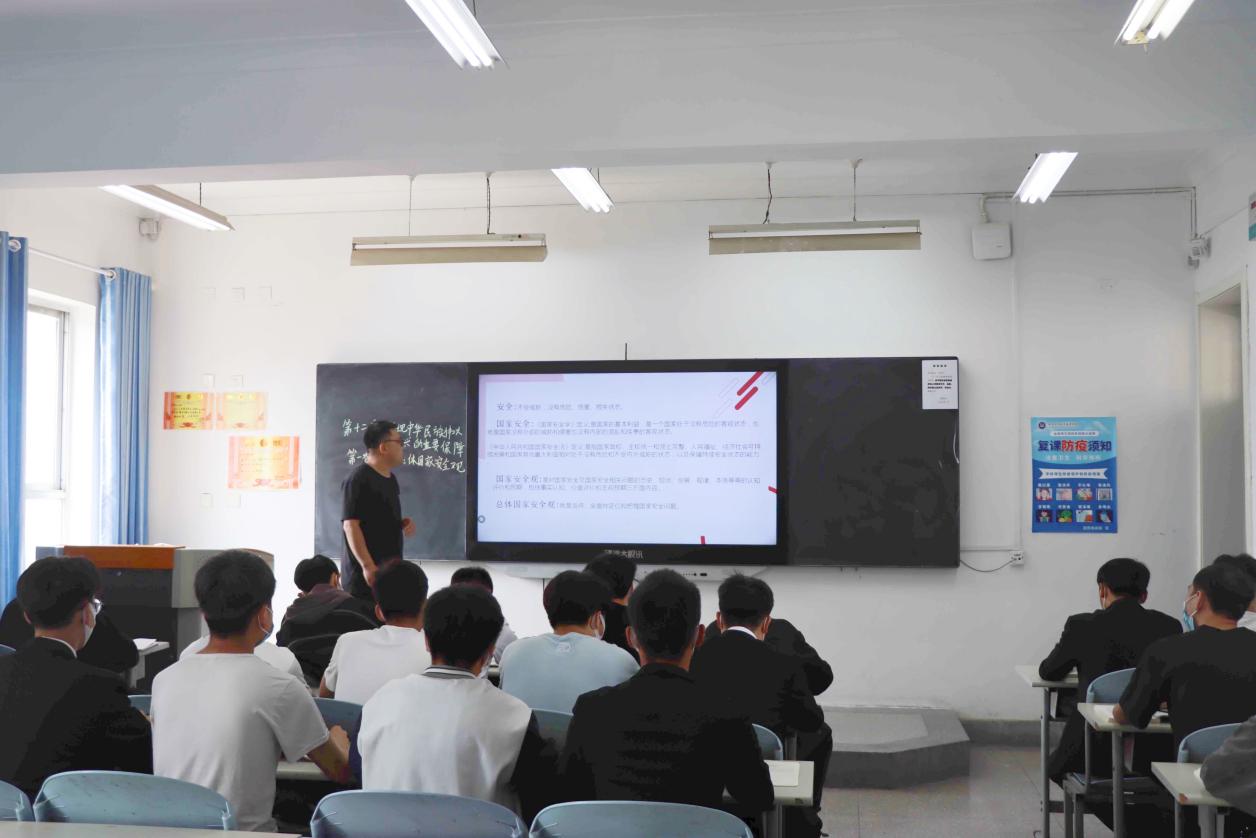 授课围绕教材第十二章第一节“坚持总体国家安全观”展开,听课过程中,安建平认真记录了教师的授课内容、教学方法和教学效果,细心观察同学们的精神面貌和学习状态。
