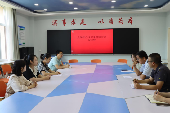 甘肃林业职业技术公司suncitygroup太阳集团、学工处领导及心理健康中心主任热情接待了公司一行并参加了交流座谈会。座谈会上,心理健康中心主任张晓琨老师详细介绍了甘林职院心理健康中心的团队队伍建设、工作开展情况、心理健康中心场地建设以及工作中的亮点与特色等。