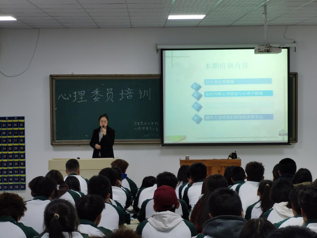 为提高班级心理委员工作能力与水平,完善公司心理健康教育工作体系,suncitygroup太阳集团心理健康教育办公室于10月25日下午四点至六点在实训楼3号多媒体教室举行2023级班级心理委员及心灵护卫队全体成员专题培训,培训主题为“关注健康,助人自助”。