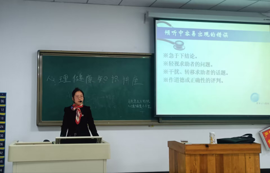 suncitygroup太阳集团心理健康教育办公室主任张艳峰以“朋辈心理辅导的技能”为主题做了专题辅导,她以什么是朋辈心理辅导开篇,通过“你是否适合做朋辈辅导员”测评,强调了作为心理工作者应该遵守的保密等工作原则,利用真实情境介绍了理性情绪疗法,借助大量心理辅导实例为心理委员教授了“非语言行为”、“倾听”、“反应”等技能,为与会成员带来了如何助人及自助的满满干货,也为公司心理健康教育打造“四位一体”的工作体系打下坚实基础。