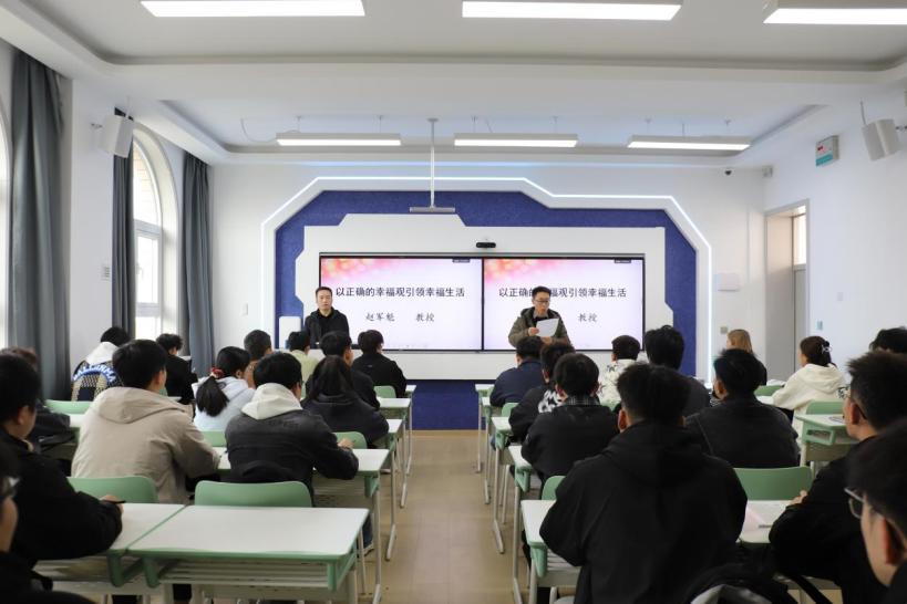 报告中,赵军魁教授围绕“以正确的幸福观引领幸福生活”这一主题,从多个维度系统阐述了正确幸福观的内涵。首先,他以“什么是幸福”这一哲学命题为切入点,引导同学们展开深入思考。随后,通过剖析当下社会中存在的几种典型错误幸福观,并结合现实案例,生动揭示了这些观念的负面影响。在此基础上,赵军魁教授重点阐释了正确幸福观的核心要义,为同学们指明了追求幸福生活的正确方向。最后,他还从个人层面分析了不幸福的内在因素,启发同学们进行自我反思,并提出切实可行的改进建议。