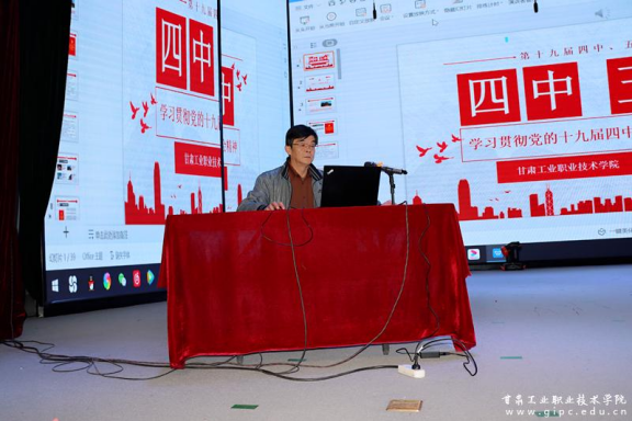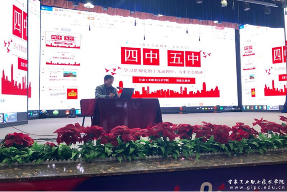 11月4日晚,公司党委副书记郭建忠在老员工活动中心为2020级员工作题为《学习贯彻党的十九届四中、五中全会精神》的形势与政策课专题讲座。