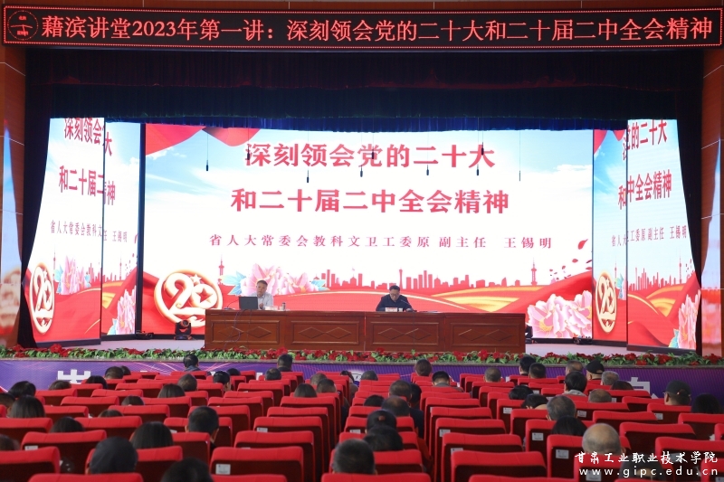 在全省上下全面贯彻落实党的二十大精神、深入开展“三抓三促”行动、冲刺起步奋力推动全省经济社会高质量发展的大好形势下,4月6日下午,公司藉滨讲堂2023年第一讲顺利举行。公司邀请省人大常委会教科文卫工委原副主任王锡明,在老员工活动中心作《深刻领会党的二十大和二十届二中全会精神》专题讲座,公司党委领导班子成员、全体党员、员工代表及花牛镇派出所、地校社区工作人员代表聆听了讲座。讲座由公司党委书记杨声主持。