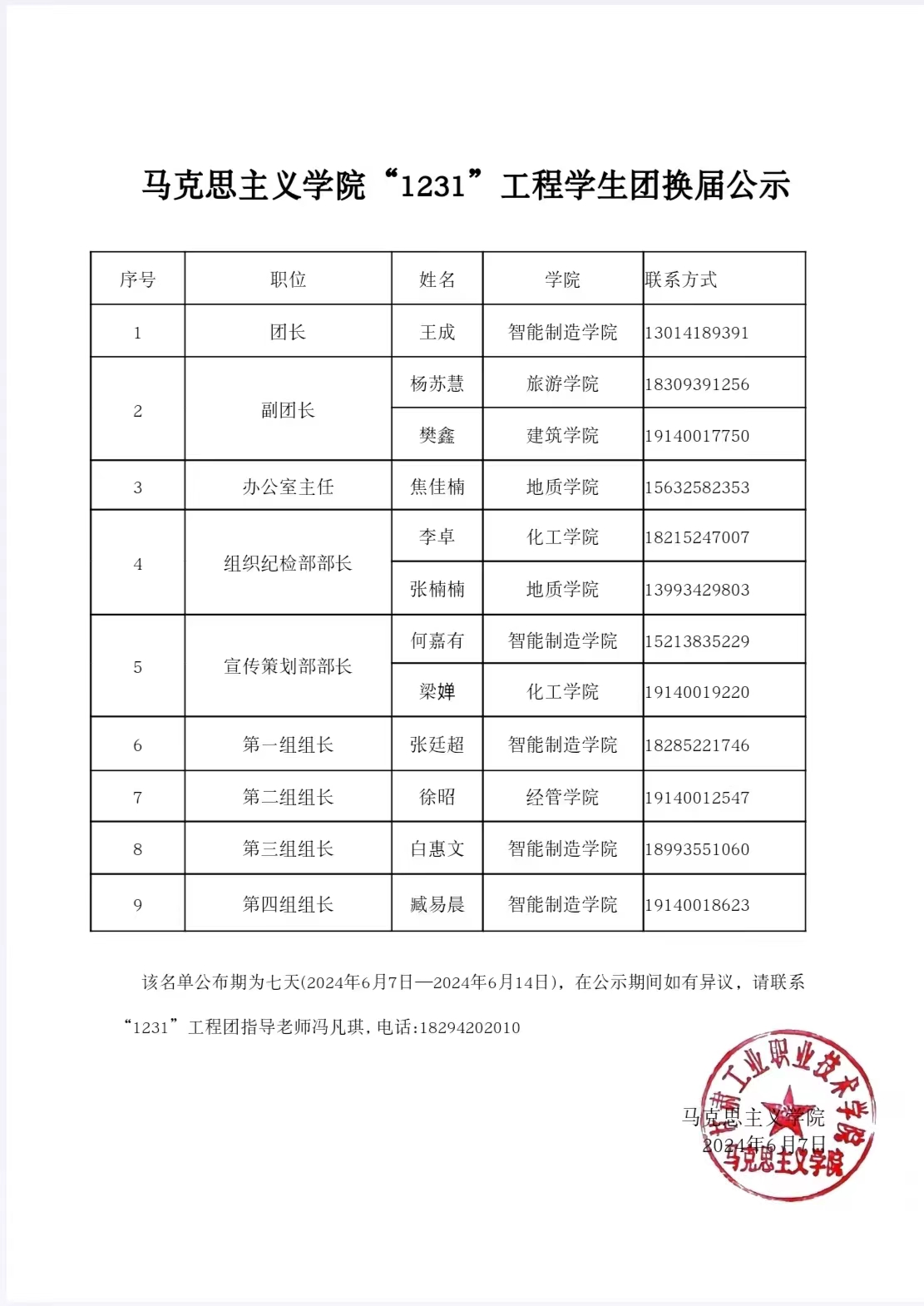 suncitygroup太阳集团“1231”工程员工团23级干部成员换届公示