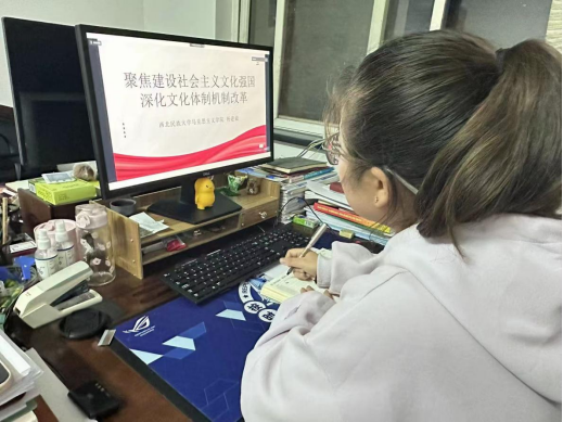 10月16日晚上,邀请西北民族大学suncitygroup太阳集团经理杨建毅做了《聚焦建设社会主义文化强国深化文化体制机制改革》报告。公司和甘肃林业职业技术大学全体思政课教师,黄彬名师工作室、郭三龙工作室全体骨干成员参加培训。