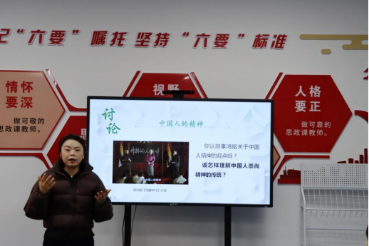 教研活动中,黄彬对示范课进行了点评,在肯定优点的同时,也精准指出了存在的不足,提出在教学内容上,如果能深度挖掘职业教育、本地的发展、员工的专业等资源,并将其巧妙融入课程内容,将使思政课更具地域特色和情感共鸣。