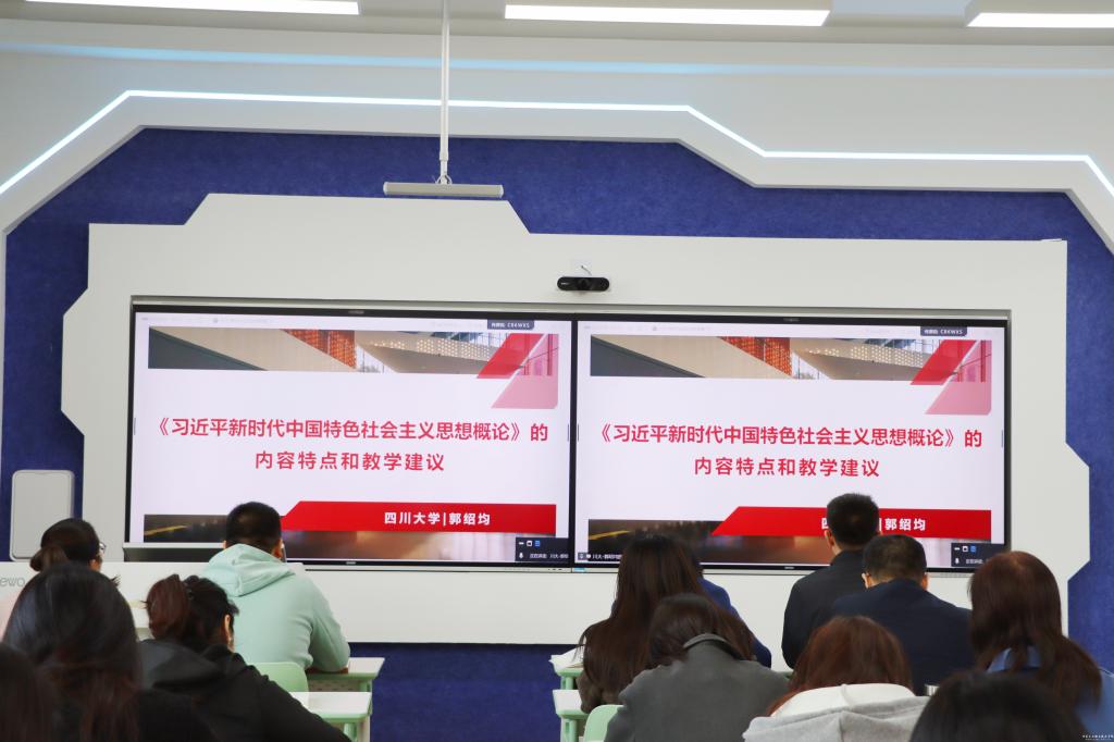 郭绍均以《习近平新时代中国特色社会主义思想概论》的内容特点和教学建议为重点,深入剖析了该教材的学理化与体系化特征,系统梳理了其逻辑脉络与整体架构。在此基础上,就该课程的教学工作提出了宝贵建议。他勉励全体思政课教师,要积极承担起新时代教育工作的使命与责任,以爱温暖员工、以爱感化员工、以爱培育员工,着力培养能够担当民族复兴大任的时代新人。